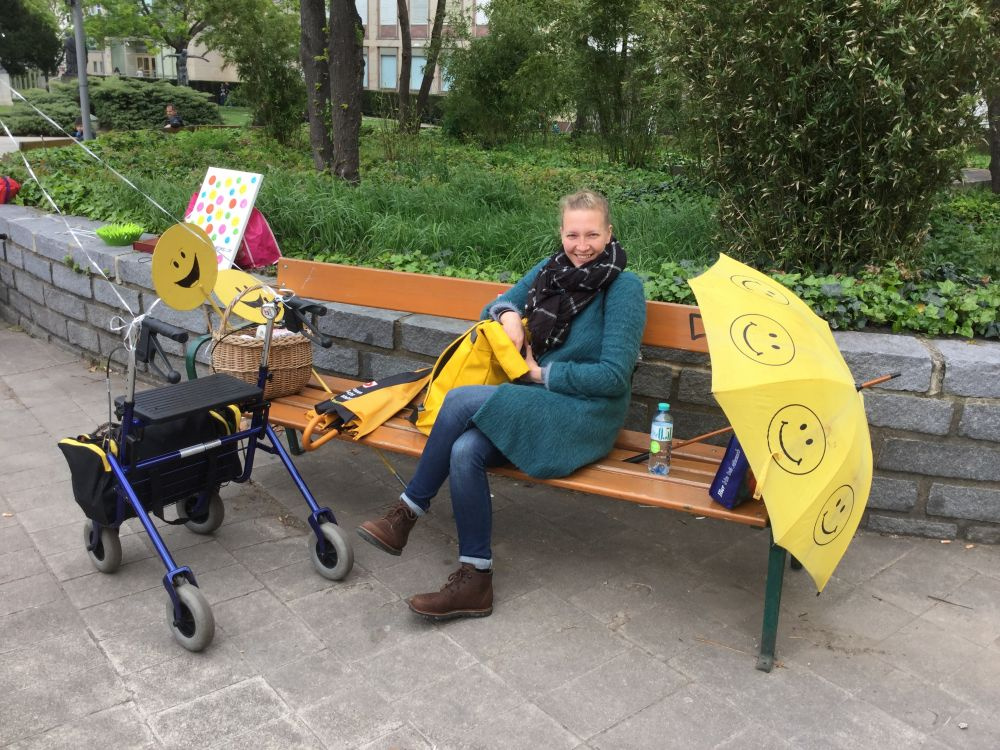 Fotos zur Lachaktion in öffentlichen Verkehrsmittel und